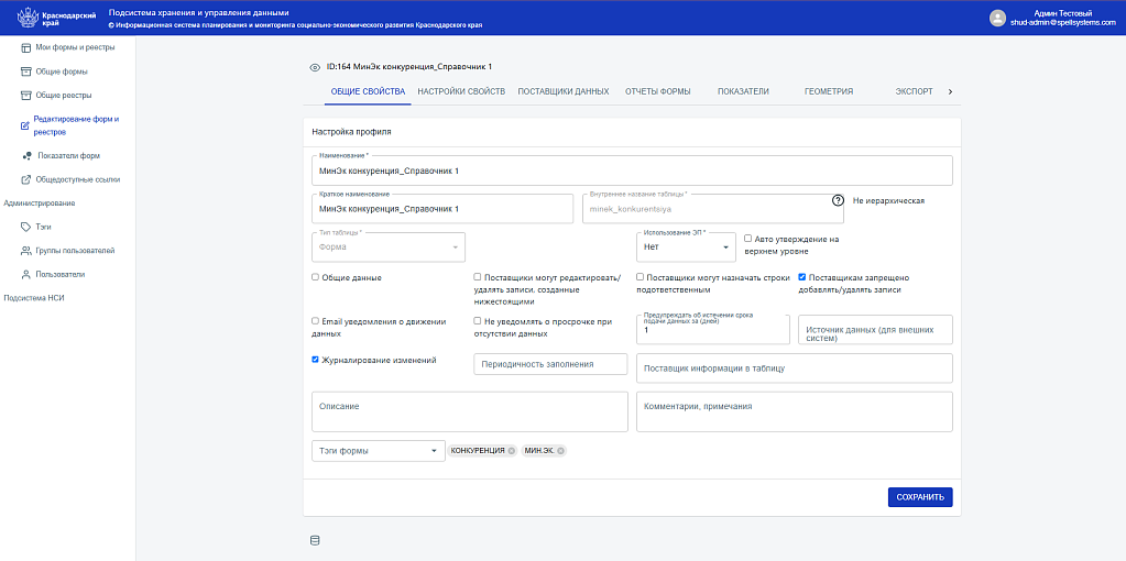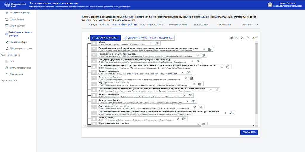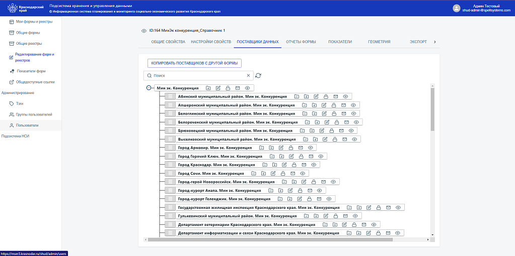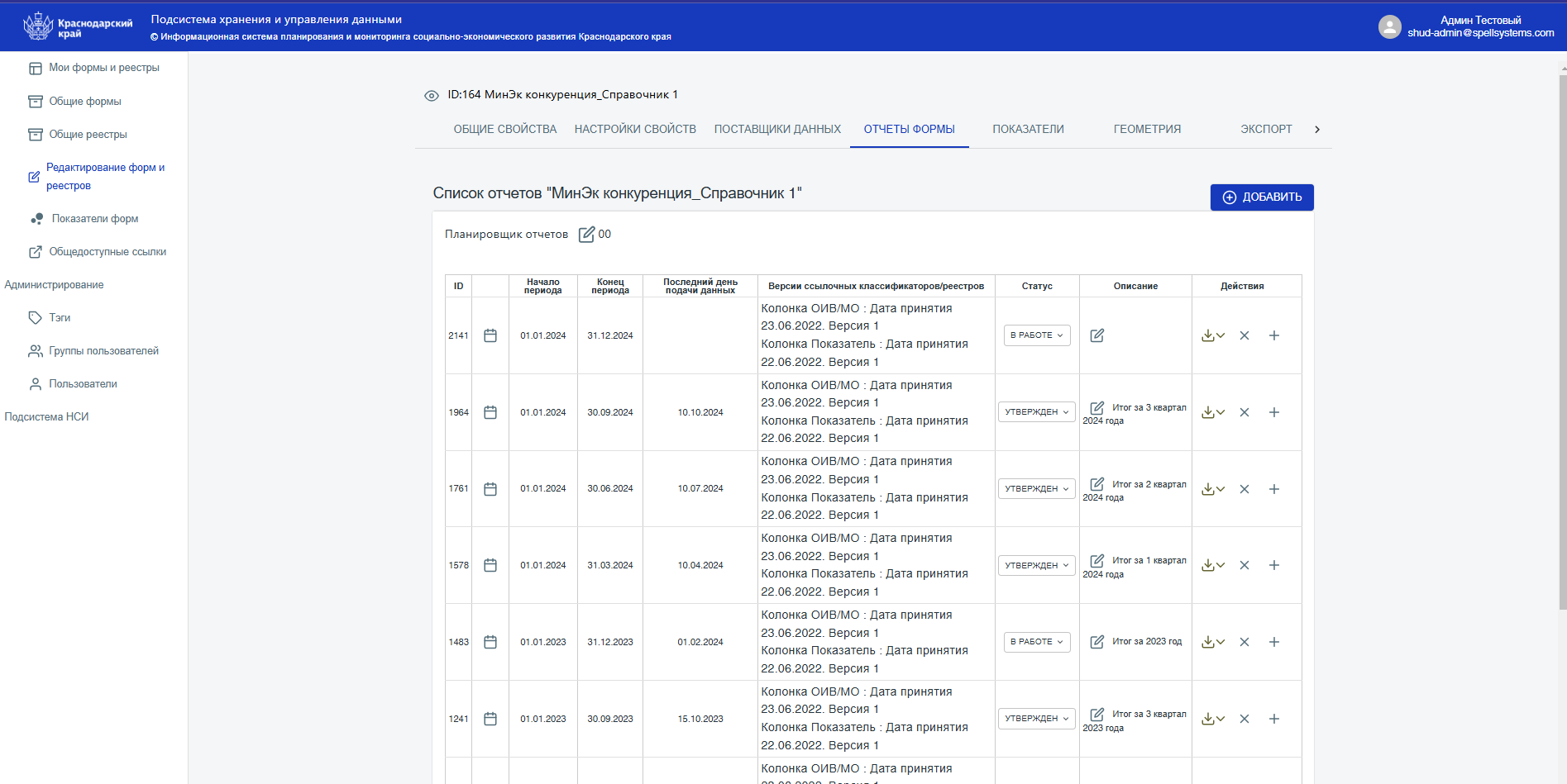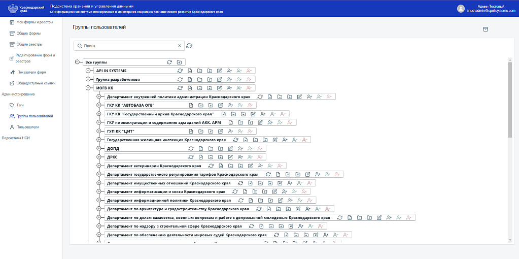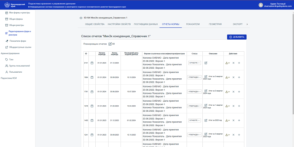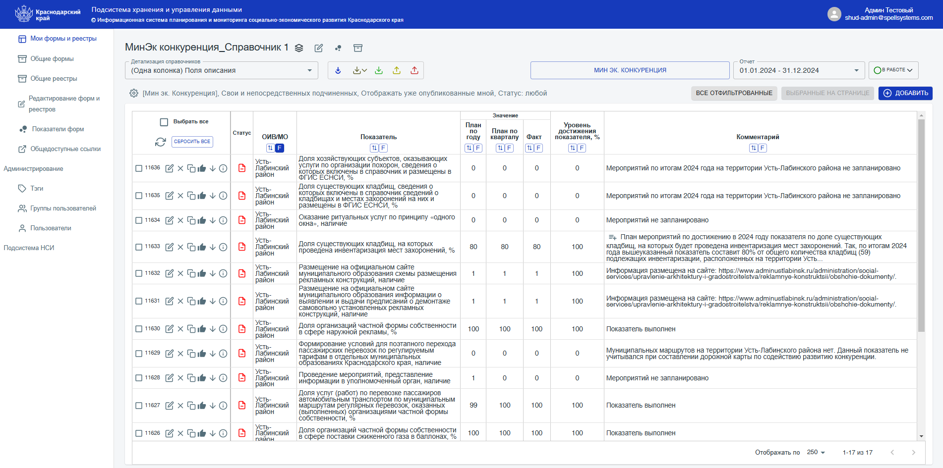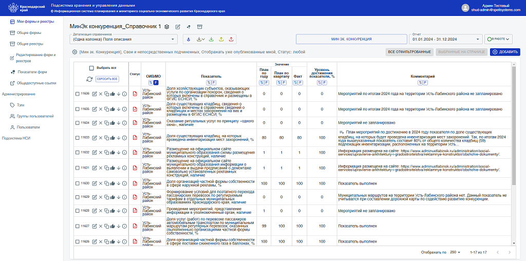 The Monitoring System for Socio-Economic Development is software designed to collect, store, and manage data at the level of executive authorities and municipal administrations of the Krasnodar Region. The system provides a user-friendly web interface and collaborative tools, allowing users to create structured information lists (registers) with strict data typing and normalization.