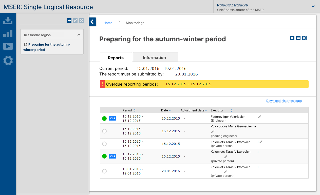 All the indices are stored in a central database, which is divided into two parts: operational and statistical. The operational database stores all the necessary data for proper system functioning and indicators that are still being revised. The statistical database stores all the verified and approved index values collected at any time.
